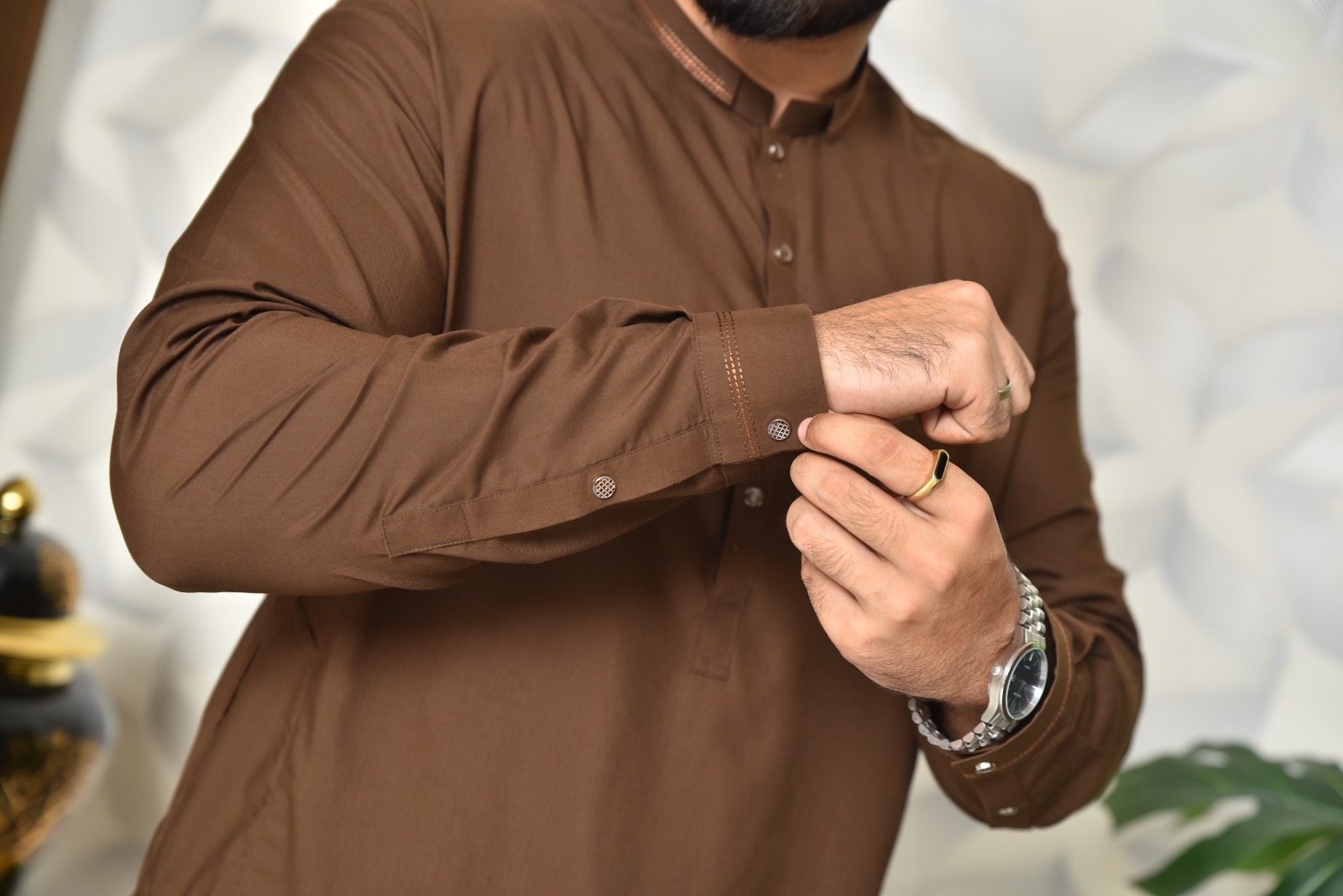 If you want an outfit that blends cultural heritage with today’s clean. Minimalistic fashion trends, the Premium Dark Brown Kameez Shalwar becomes an ideal addition to your wardrobe. It offers strength in style, clarity in design, and comfort in fabric everything a modern Pakistani man expects from premium ethnic wear.
