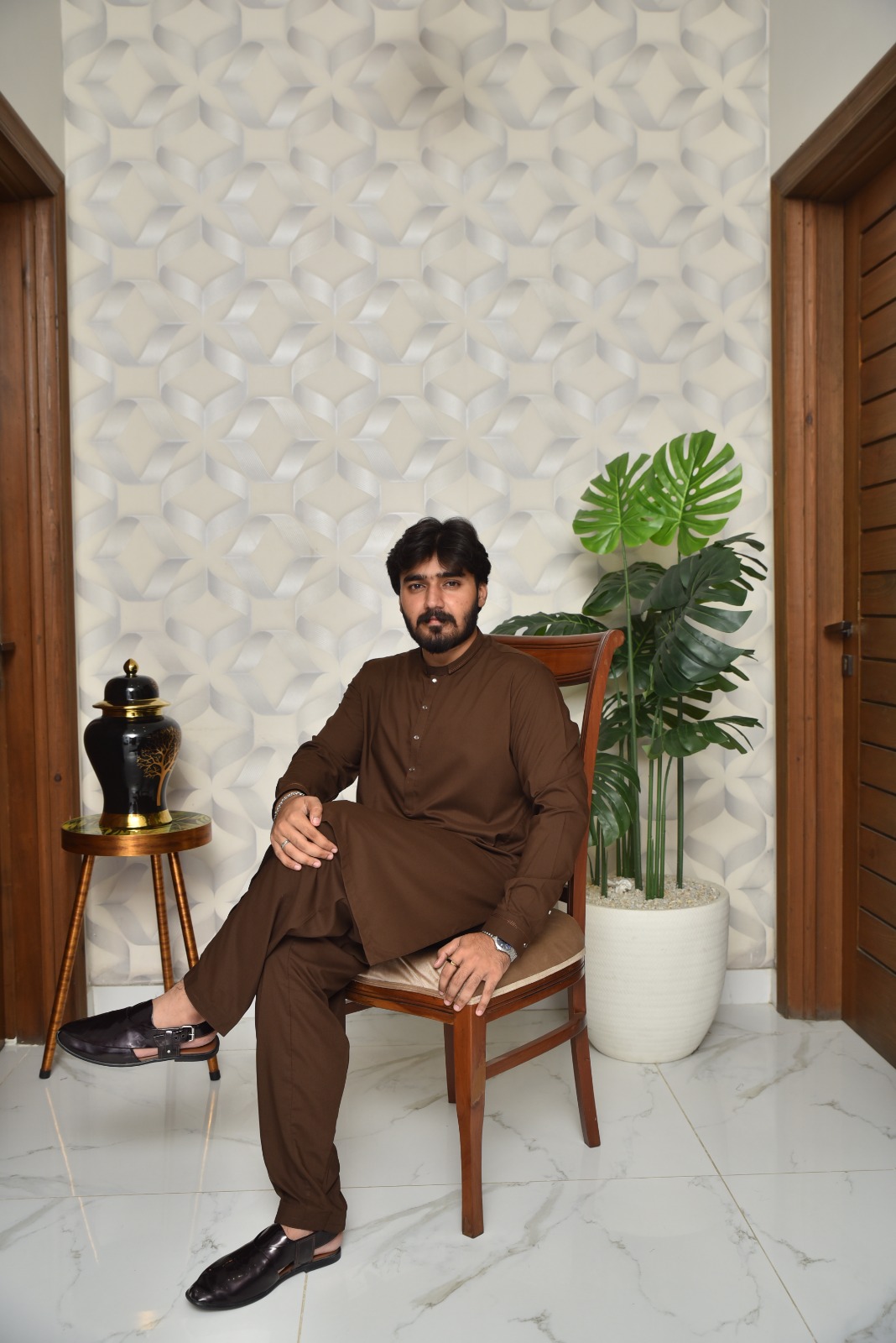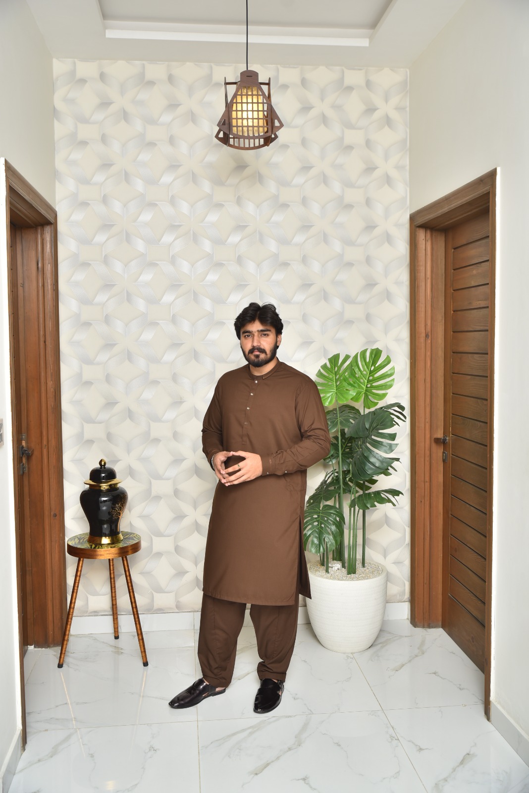 The dark-brown tone blends perfectly with Pakistani fashion preferences because it reflects sophistication and cultural depth. Men across Pakistan appreciate this color due to its versatility. You can pair the kameez shalwar with black leather sandals, Peshawari chappal, or formal shoes for a sharp and composed look. The outfit works seamlessly for Fridays, festive evenings, office wear, and semi-formal occasions throughout the year.